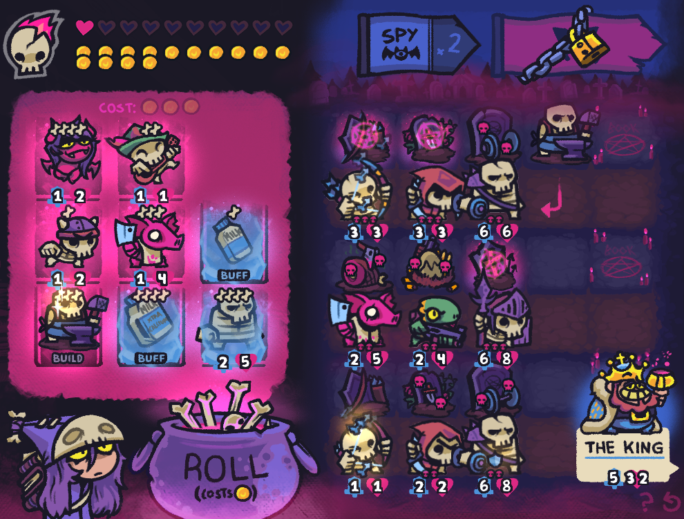 I love this game, and I had a really fun time with it. Spell books are under rated in my opinion. They carried me so hard. Excalibur is great when you spend a lot of gold buffing him and then upgrade him so he's doing like, 28 damage. Excalibur actually one-shot the king for me. I ended up winning with 2 hp